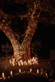J'ai imaginé une décoration florale complétement intégrée au lieu. Un chêne centenaire mis en valeur et voulu comme témoin de l'engagement de Clara et Mirhane.